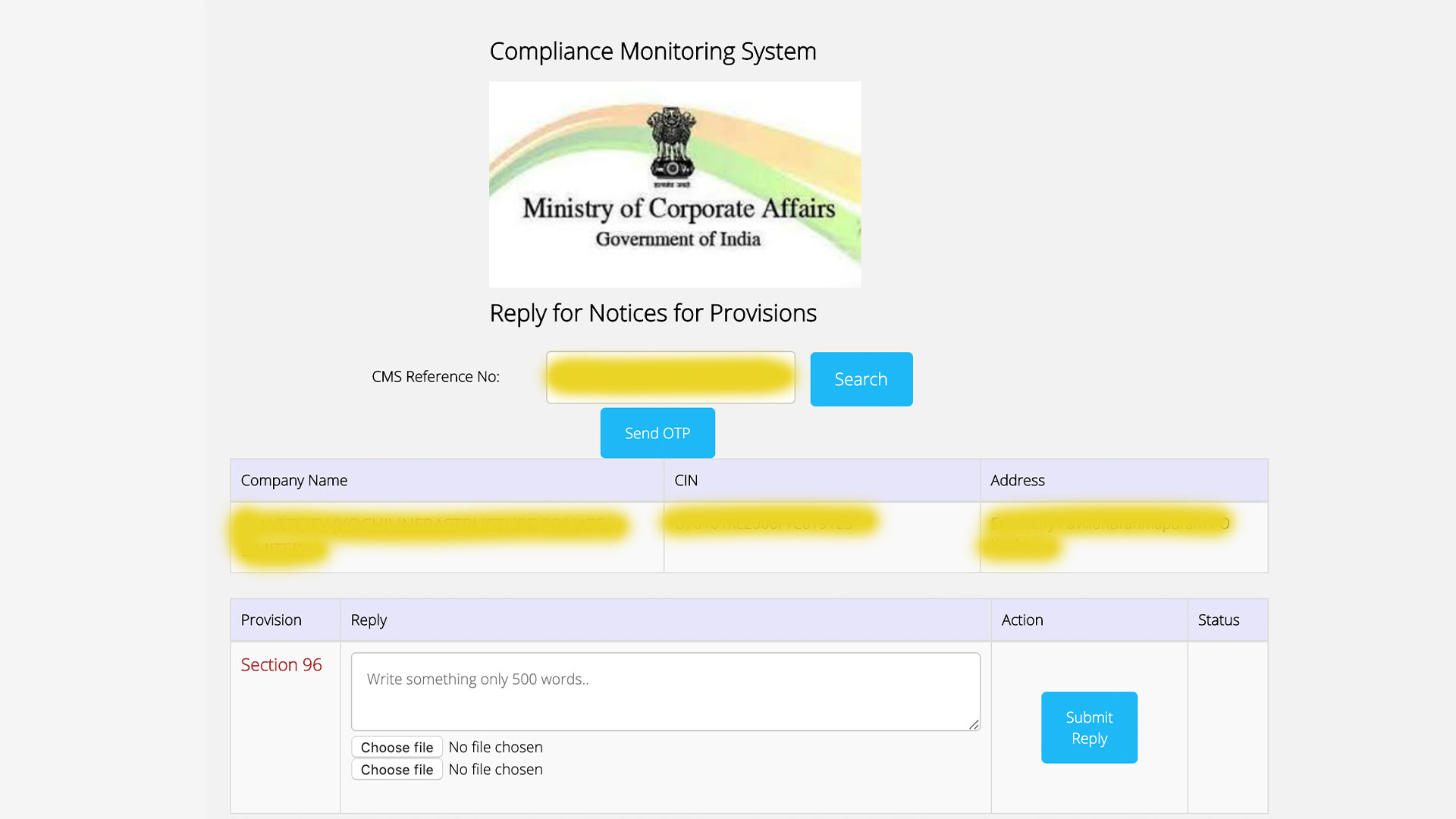 The notice will carry details of non-compliances under which section the notice is issued for and the timelines for submitting the reply.
